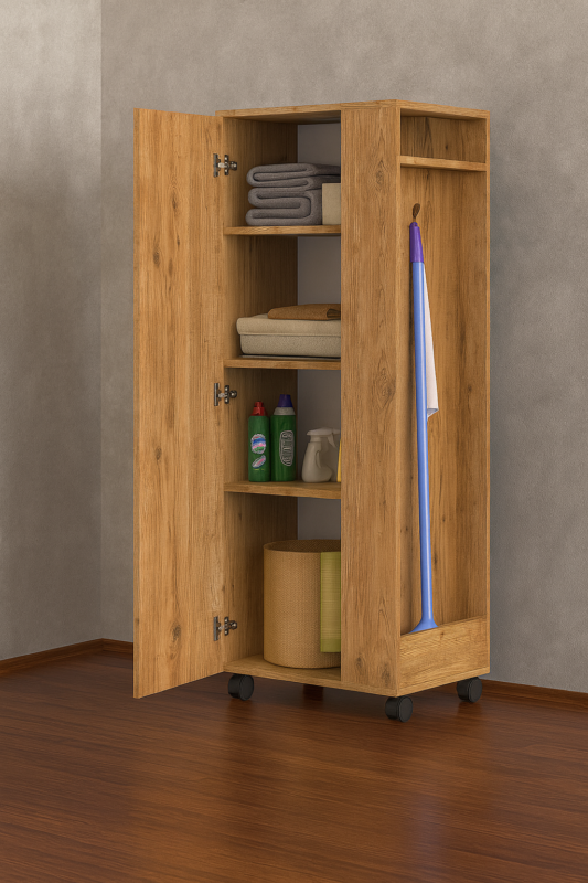 60 cm – Tarçın Paspas,süpürge-Temizlik Malzeme Dolabı- Çok Amaçlı Dolap Paspas- Banyo Dolabı – Atlantik Çam