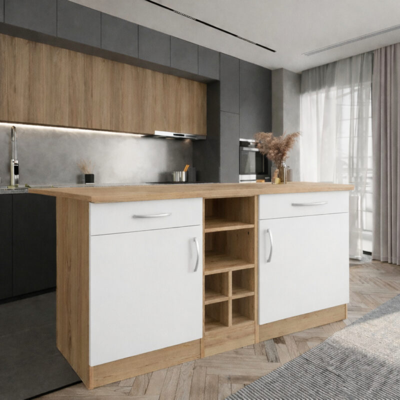 ANDA 2 ÇEKMECELİ 2 KAPAKLI MUTFAK ADASI- ÇOK AMAÇLI DOLAP-HAZIR MUTFAK DOLABI-ERZAK-KİLER DOLABI – AtlantikÇam-Beyaz