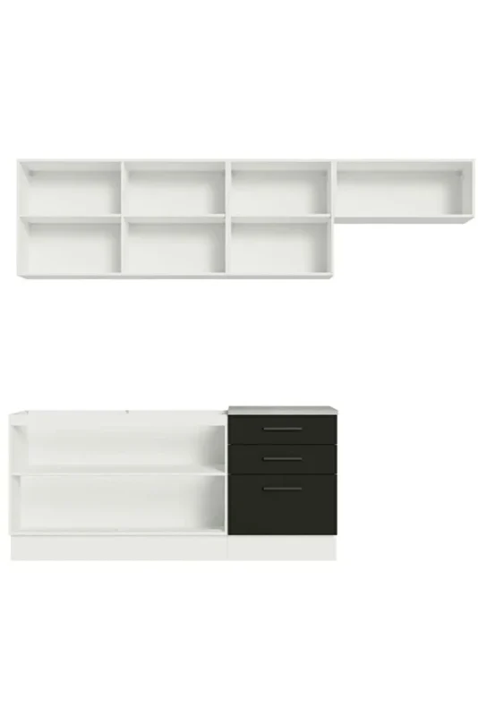 Arp Hazır Mutfak Dolabı-Çok Amaçlı Dolap 240 cm Beyaz Ve Beyaz Laminat Tezgah Dahil – Antrasit