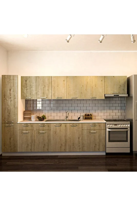 Avlonya Hazır Mutfak Dolabı Kiler Dahil 320cm-Beyaz Laminat Tezgah Dahil-Bulaşık Makinesi Yeri Mevcut – Meşe