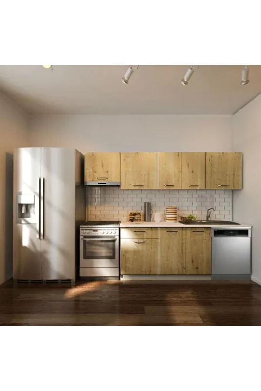 Debre Hazır Mutfak Dolabı 260 cm-Beyaz Laminat Tezgah Dahil-Bulaşık Makinesi Yeri Mevcut-Mat – Meşe