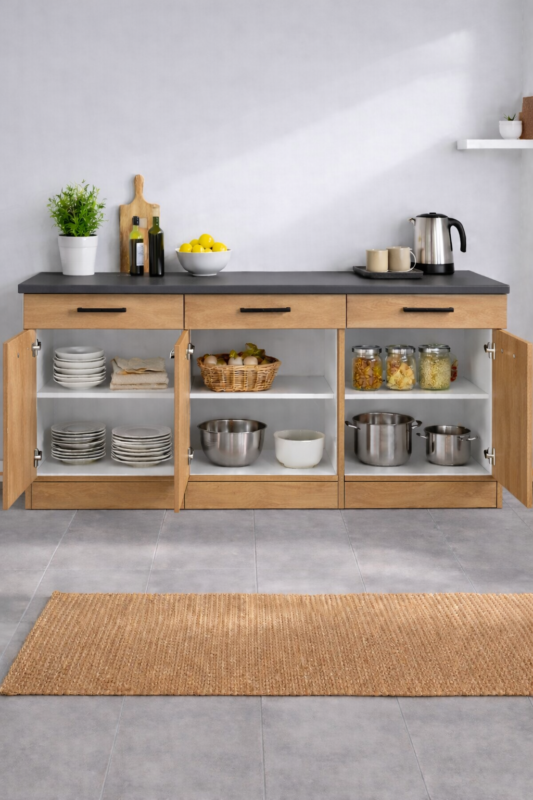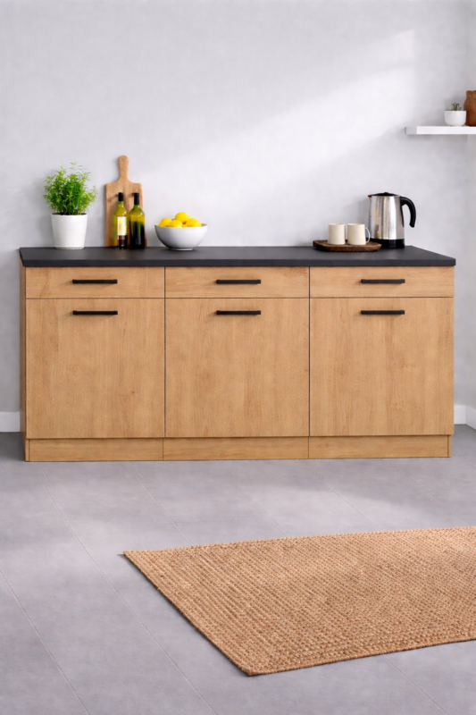 Diva 3 Çekmeceli-3 Kapaklı Mutfak Alt Modül-Çok Amaçlı Dolap-Kiler Dolabı 180 Cm -Tezgah Dahil – Atlantik Çam