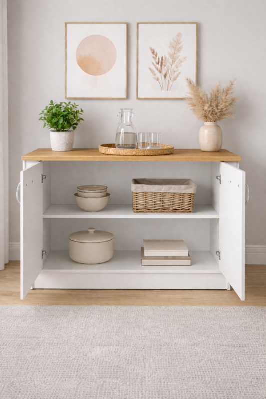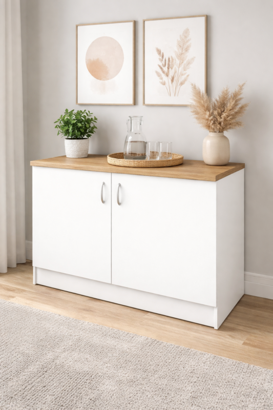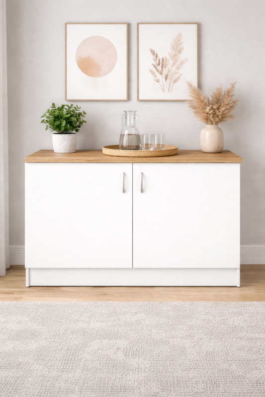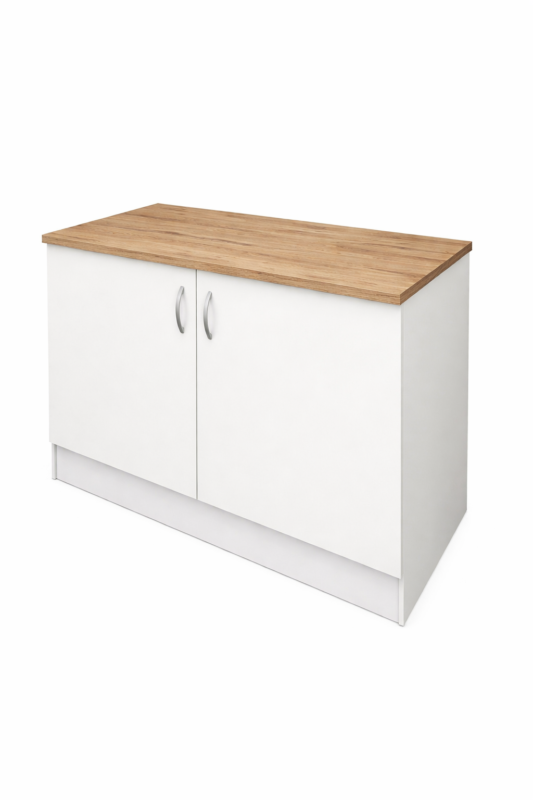İzya Mutfak Alt Modül-Çok Amaçlı Dolap-Kiler Dolabı 120 Cm -Tezgah Dahil – Beyaz-Atlantik Çam Tezgah