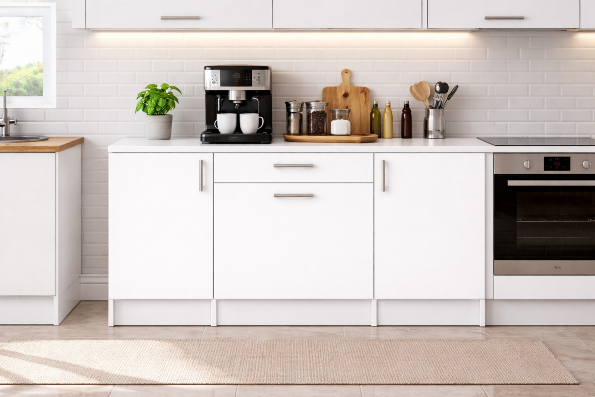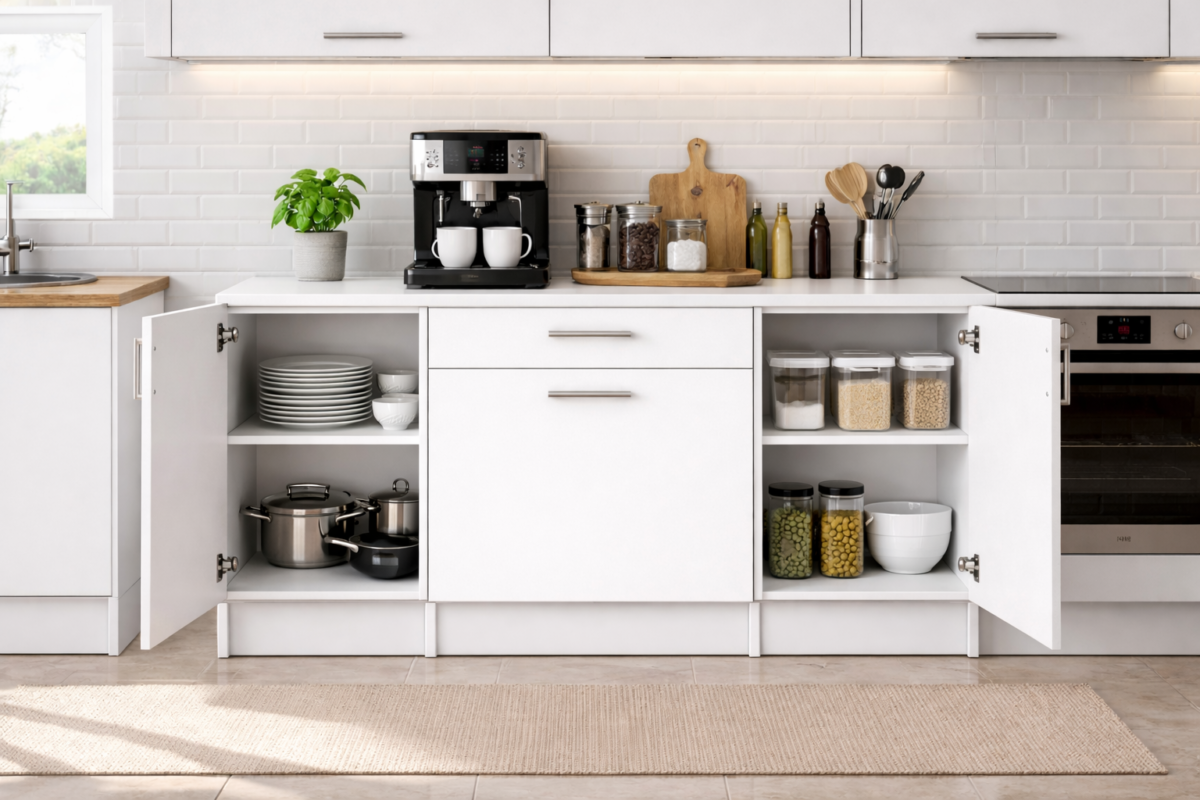 Kali Alt Modül-Çok Amaçlı Dolap -140 cm -3 Kapaklı-1 Çekmeceli-Laminat Beyaz Tezgah Dahil – Beyaz