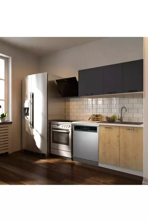 Klos Hazır Mutfak Dolabı 140 Cm -Beyaz Laminat Tezgah Dahil-Bulaşık Makinesi Yeri Mevcut-Mat-AtlantikÇam-Antrasit