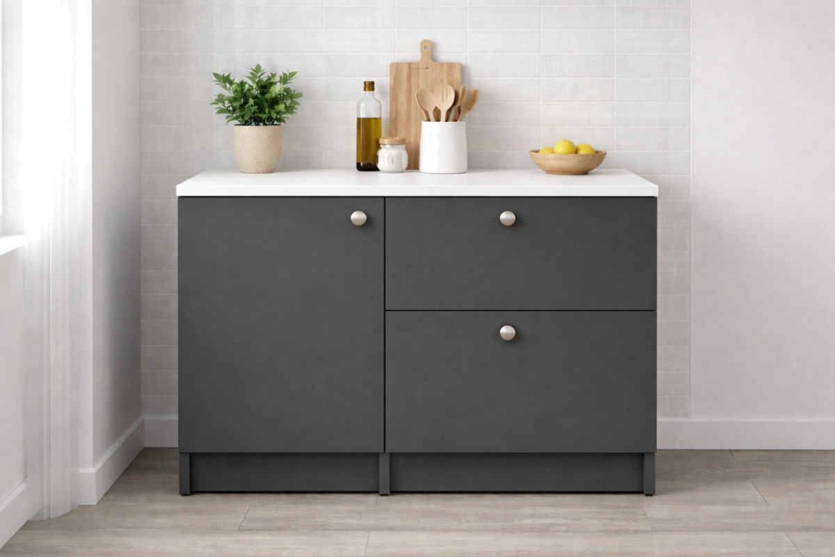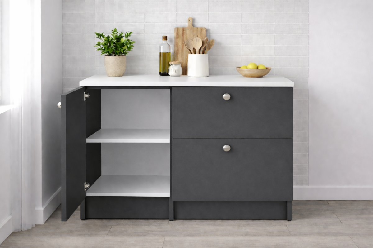 Saka Alt Modül-Çok Amaçlı Dolap -100 cm -1 Kapaklı-2 Çekmeceli-Laminat Beyaz Tezgah Dahil – Antrasit
