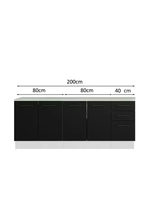 Sofia Mutfak 4 Kapaklı-3 Çekmeceli Alt Modül -200 cm – Çok Amaçlı Dolap-Beyaz Laminat Tezgah Dahil