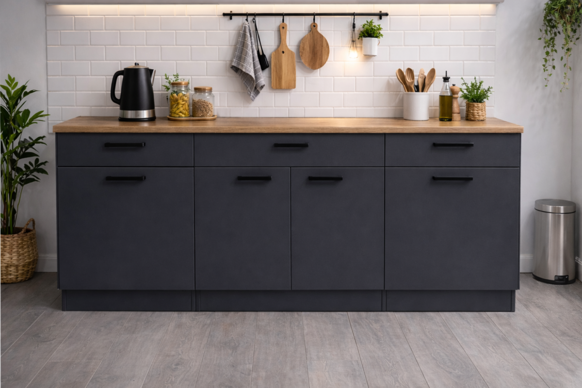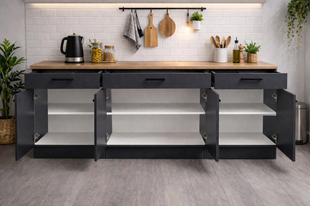 Tans Mutfak 3 Çekmeceli 3 Kapaklı Alt Modül 200 cm – Çok Amaçlı Dolap -Tezgah Dahil