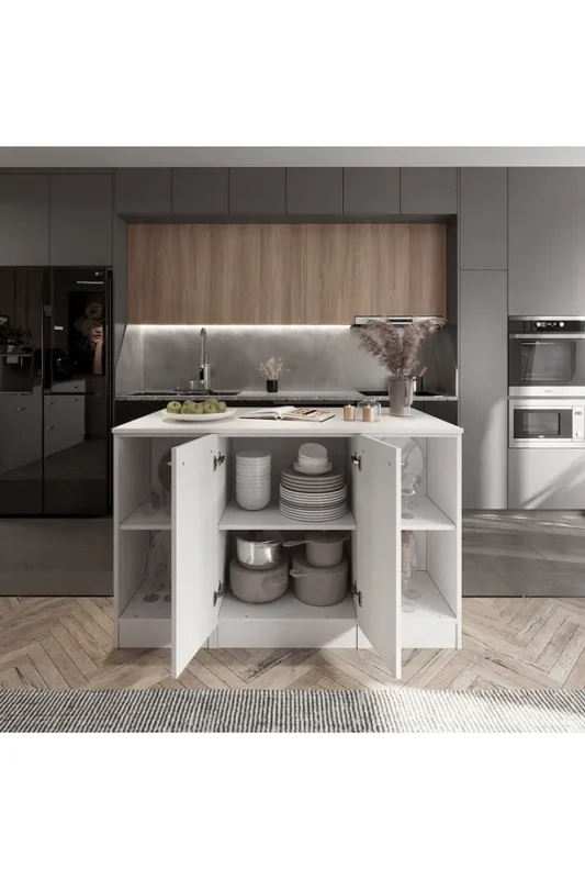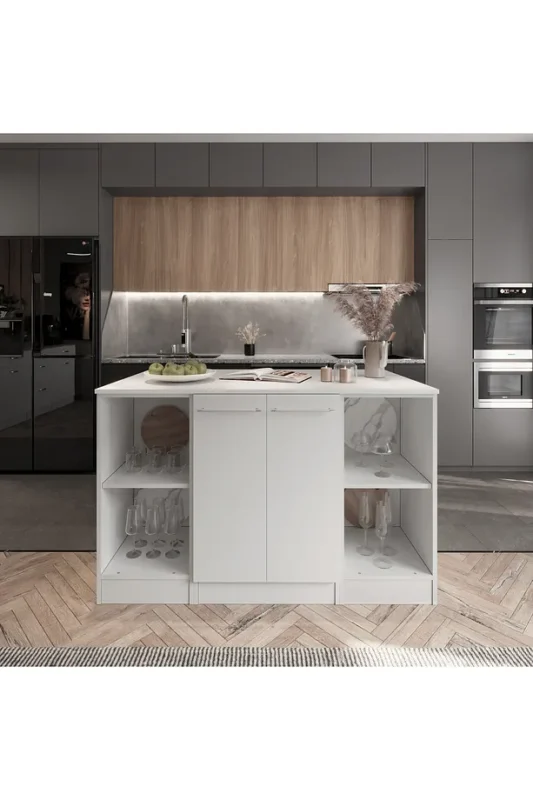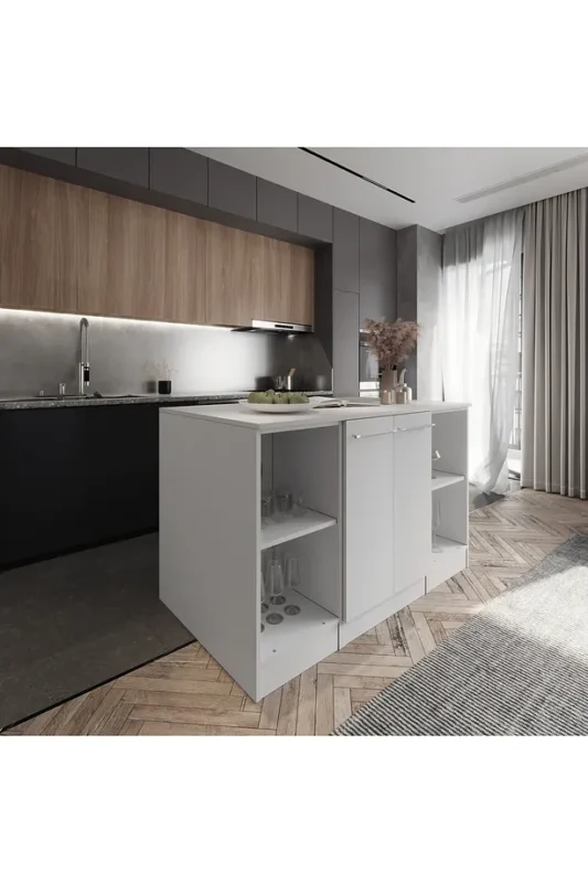 Tdesigno Beyaz Tezgahlı – Reina Mutfak Adası -160 cm – Çok Amaçlı Dolap – Alt Modül – Beyaz Tezgah Dahil
