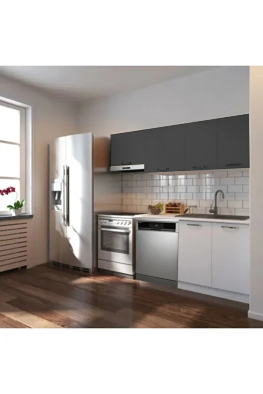 Ulza Hazır Mutfak Dolabı 200 Cm –Beyaz Laminat Tezgah Dahil-Bulaşık Makinesi Yeri Mevcut-Mat – Beyaz-Antrasit