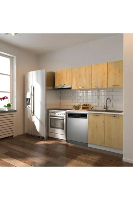 Ulza Hazır Mutfak Dolabı 200 Cm –Beyaz Laminat Tezgah Dahil-Bulaşık Makinesi Yeri Mevcut-Mat – Meşe