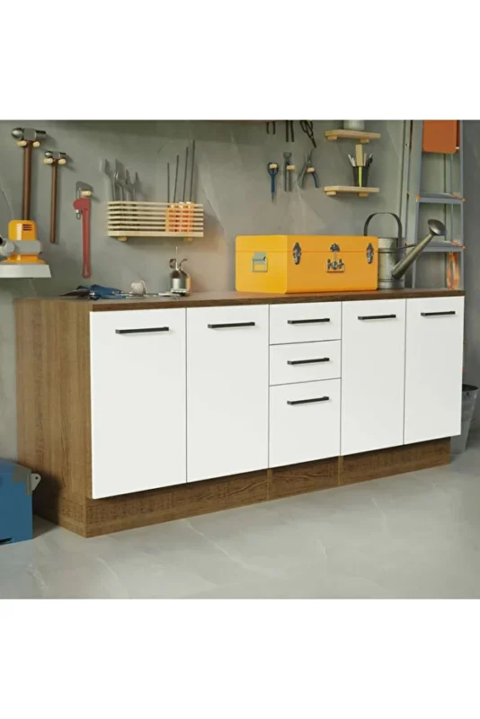 “Vant Mutfak 4 Kapaklı-3 Çekmeceli Alt Modül -200 cm – Çok Amaçlı Dolap -AtlantikÇam-Beyaz-Tezgah Dahil” için yorum yapan ilk kişi siz olun