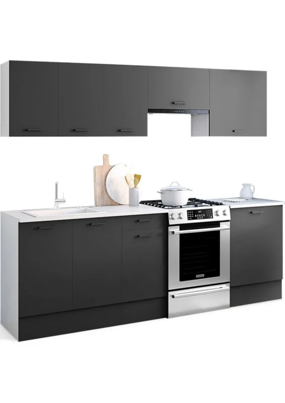 “Vena Hazır Mutfak Dolabı 240 cm -Beyaz Laminat Tezgah Dahil-Antrasit-Mat” için yorum yapan ilk kişi siz olun