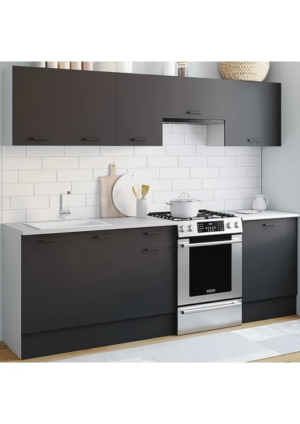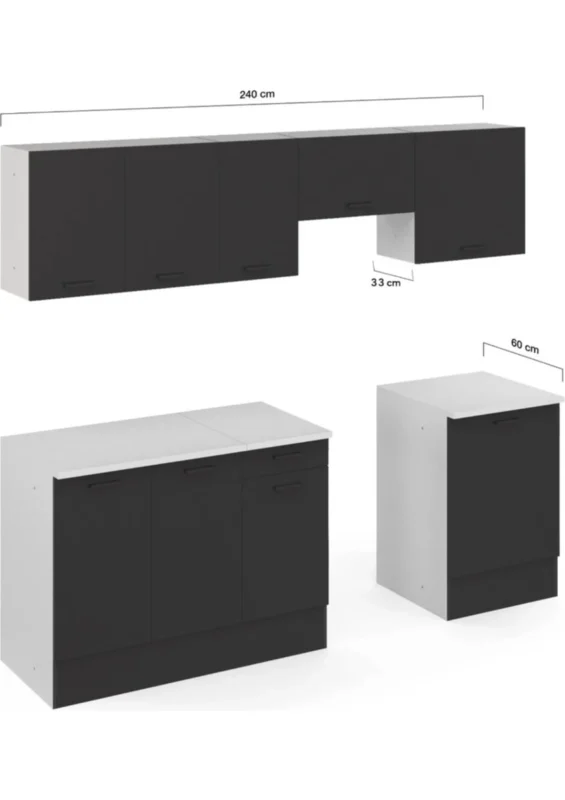 Vena Hazır Mutfak Dolabı 240 cm -Beyaz Laminat Tezgah Dahil-Antrasit-Mat